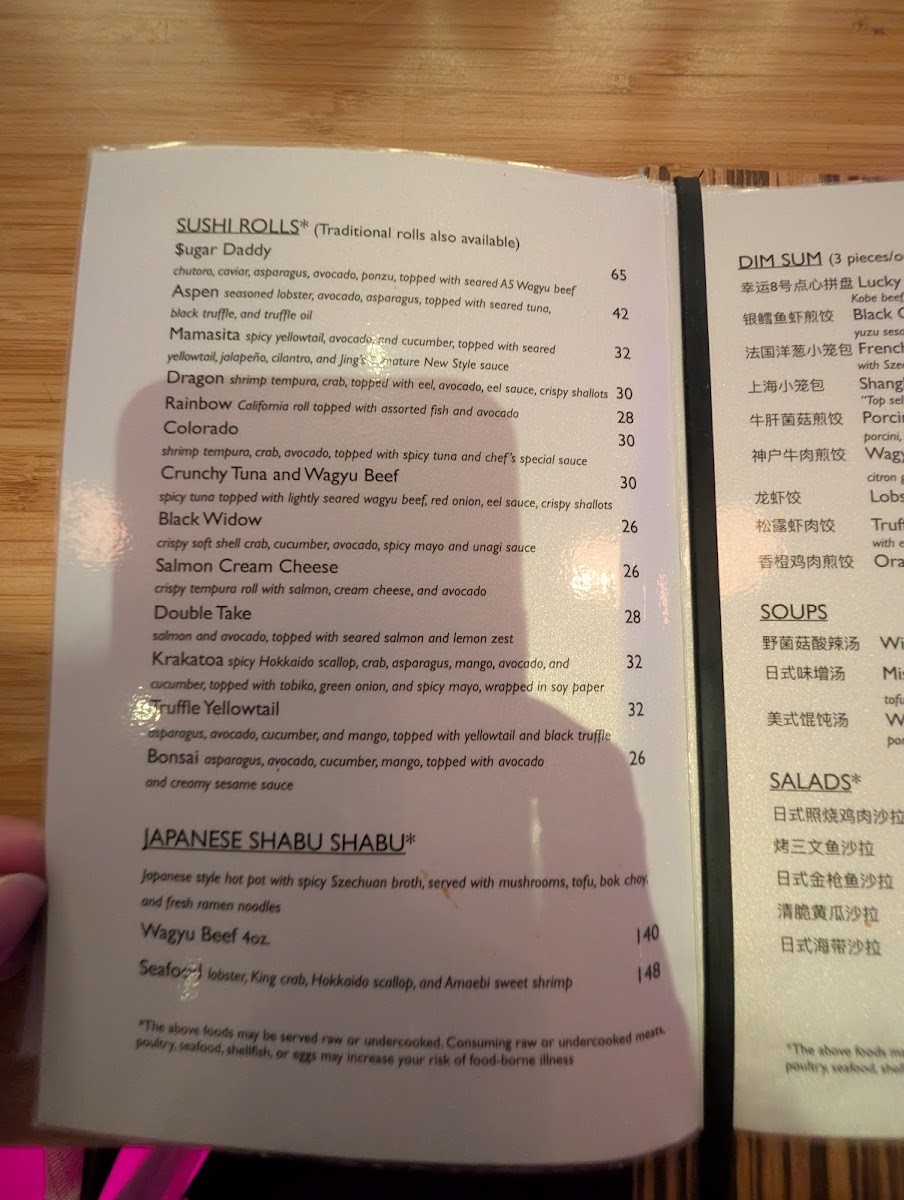 (Pan seared) kobe beef, lobster, miso black cod prawn, spinach, 2 of each